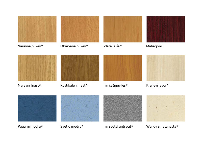 Barve in materialiIzbirate lahko med različnimi barvami in materiali. |