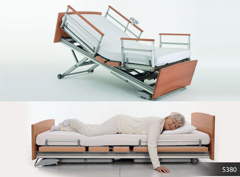 Postelja 5380 2Novost! Bolniška postelja, ki se lahko spusti do tal. Za več informacij si oglejte katalog. |
